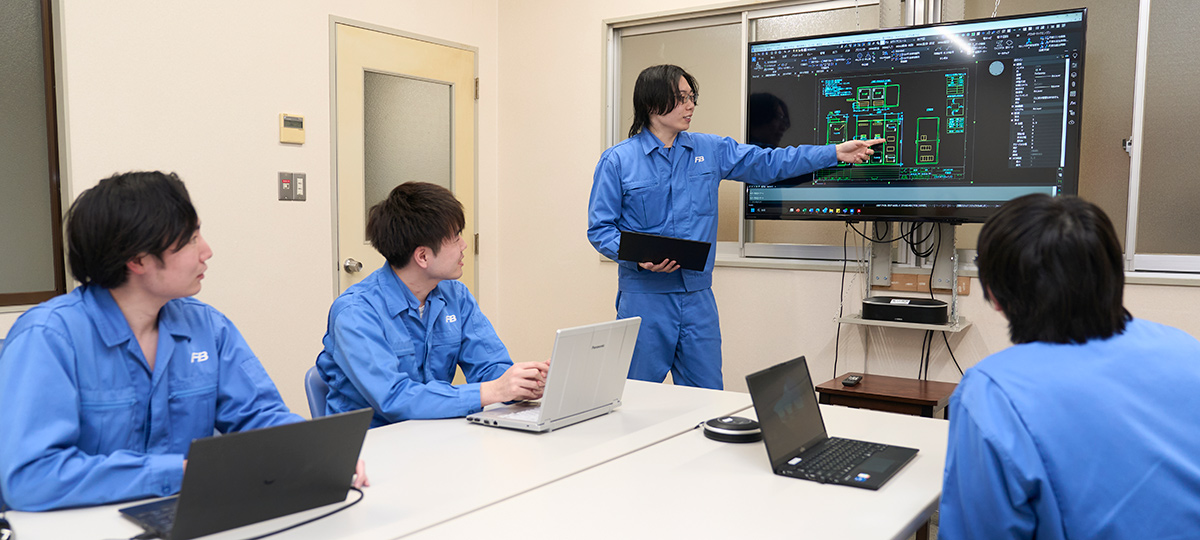 さらに、実際の搬入先に営業と一緒に出向いて、現場の条件を確認することもあります。そういった現場での気づきを、設計に活かすことができるのもこの仕事の魅力です。電気だけでなく構造設計の担当者と連携する場面も多く、技術者としての視野が広がっていることを日々実感しています。